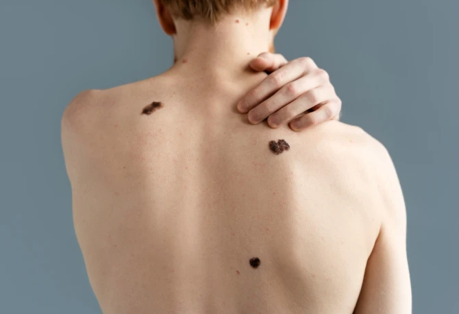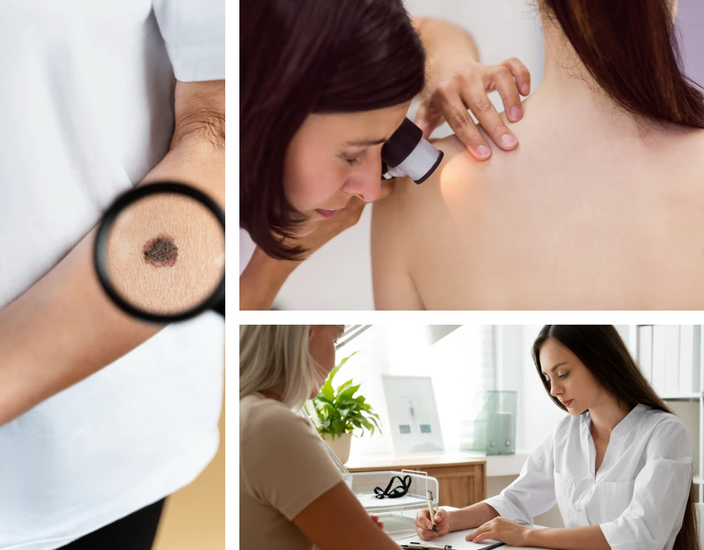 Avaliação de manchas e sinais suspeitos, com exame detalhado e acompanhamento para rastreamento do câncer de pele.
